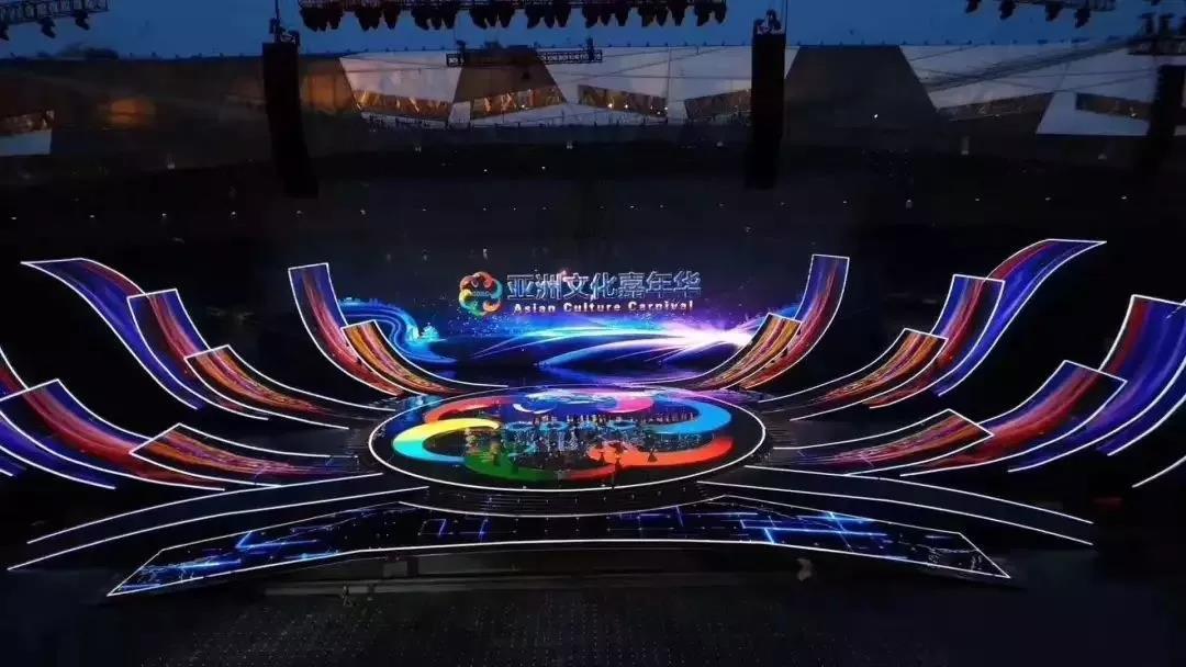 作為亞洲文明對話大會(huì)的重要活動(dòng)之一,整個(gè)大會(huì)現(xiàn)場史無前例地使用了超過10000平方的LED顯示屏,現(xiàn)場時(shí)而宛如一朵巨大的牡丹花,盛開18朵花瓣,綻放在鳥巢中央;時(shí)而猶如系著云霞披風(fēng)的孔雀, 煽動(dòng)著壯碩的羽翎 ,做一曲皇朝華美的凱歌。